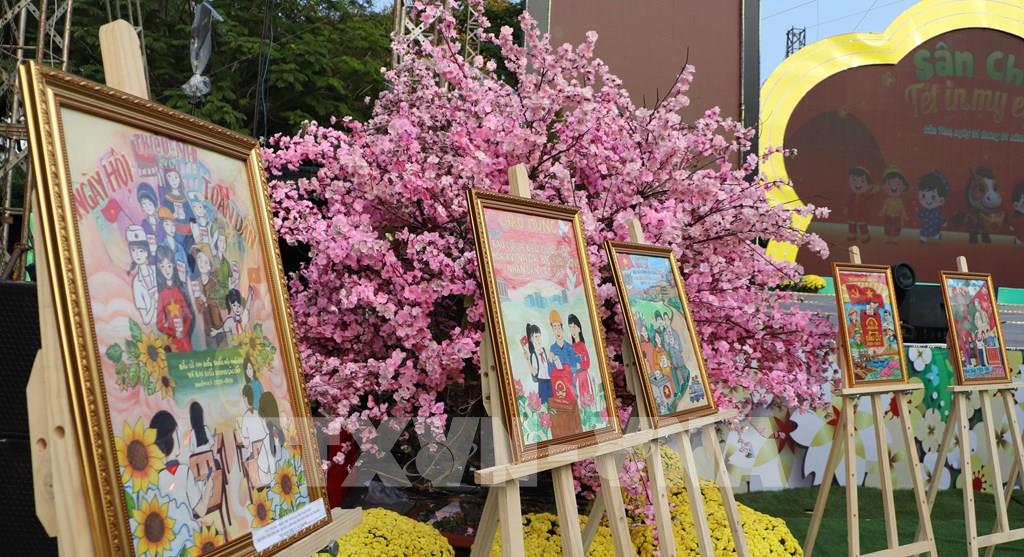 Các tác phẩm của thiếu nhi tại Hội thi vẽ tranh chào mừng Bầu cử đại biểu Quốc hội khóa XVI và đại biểu Hội đồng nhân dân các cấp nhiệm kỳ 2026 - 2031. Ảnh: Hồng Thái - TTXVN