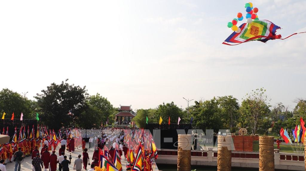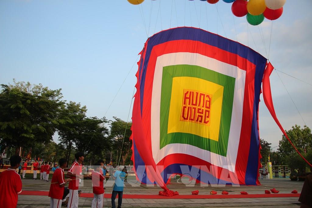Năm màu của lá đại kỳ tượng trưng cho ngũ hành, thể hiện sự hòa hợp. Ảnh: Nguyễn Hằng - TTXVN