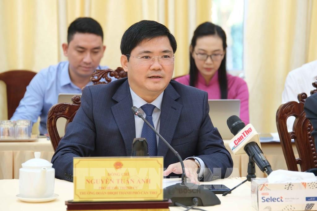Phó Bí thư Thành ủy, Trưởng Đoàn Đại biểu Quốc hội thành phố Cần Thơ Nguyễn Tuấn Anh phát biểu tại buổi làm việc. Ảnh: Thanh Liêm - TTXVN