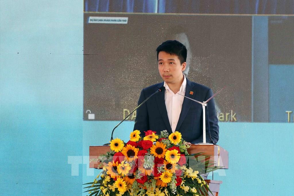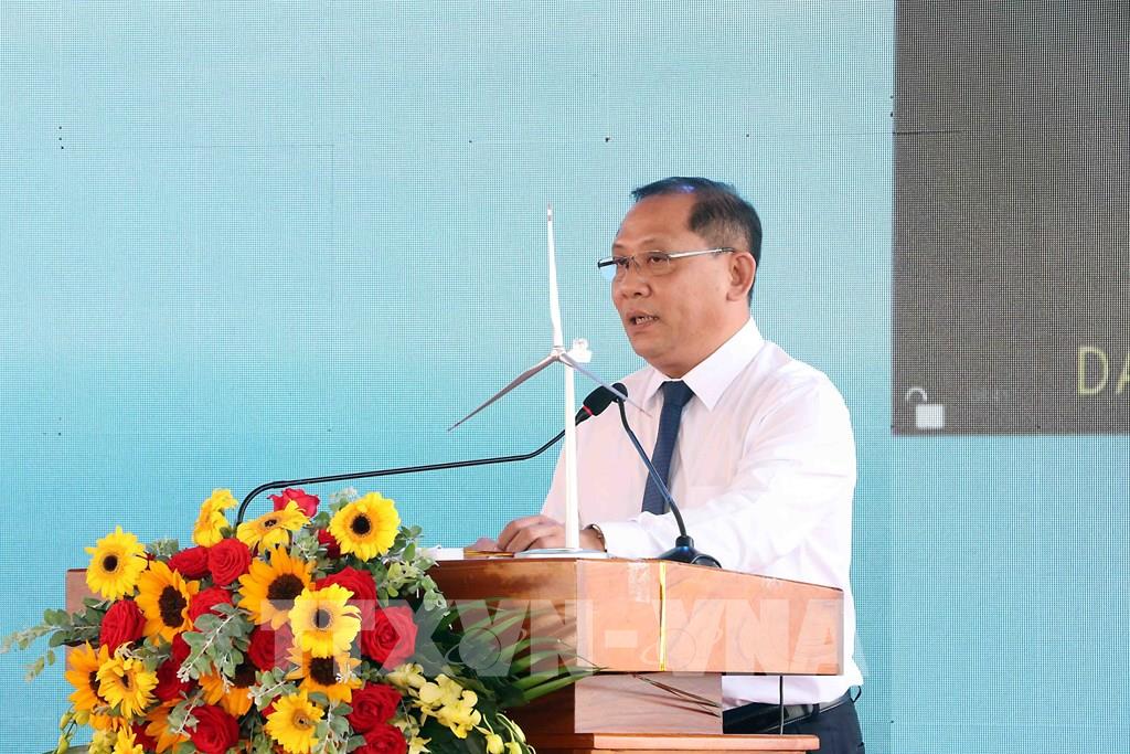 Ông Tô Duy, Chủ tịch Hội đồng quản trị công ty cổ phần Năng lượng ST2, đại diện chủ đầu tư Dự án phát biểu tại buổi lễ. Ảnh: Trung Kiên - TTXVN