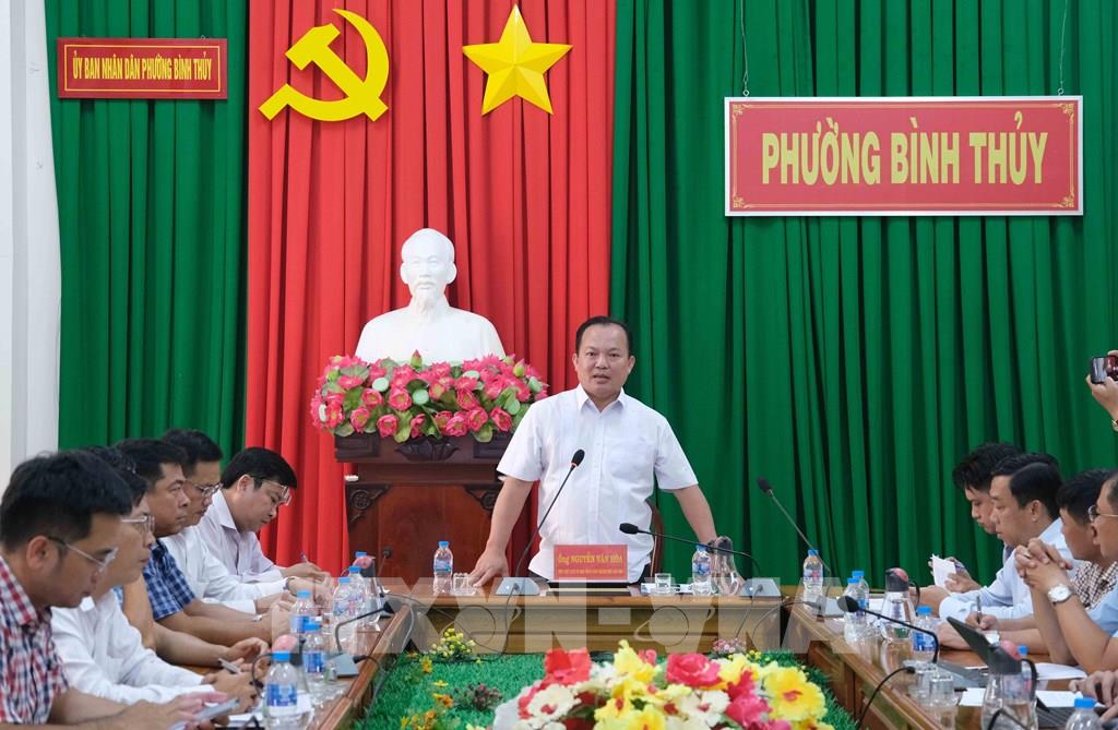 Phó Chủ tịch UBND thành phố Cần Thơ Nguyễn Văn Hòa phát biểu tại buổi làm việc với các đơn vị liên quan sau khi kiểm tra tiến độ dự án nâng cấp, mở rộng Quốc lộ 91. Ảnh: Thanh Liêm - TTXVN