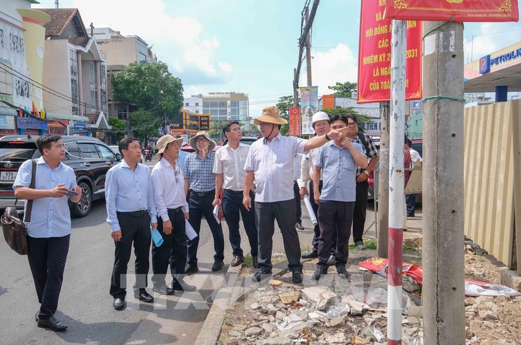 Phó Chủ tịch UBND thành phố Cần Thơ Nguyễn Văn Hòa kiểm tra tiến độ dự án nâng cấp, mở rộng Quốc lộ 91 tại phường Bình Thủy. Ảnh: Thanh Liêm - TTXVN