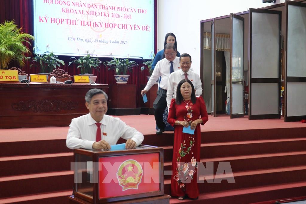 Các đại biểu bỏ phiếu bầu chức danh Phó Chủ tịch UBND TP. Cần Thơ. Ảnh: Ngọc Thiện - TTXVN