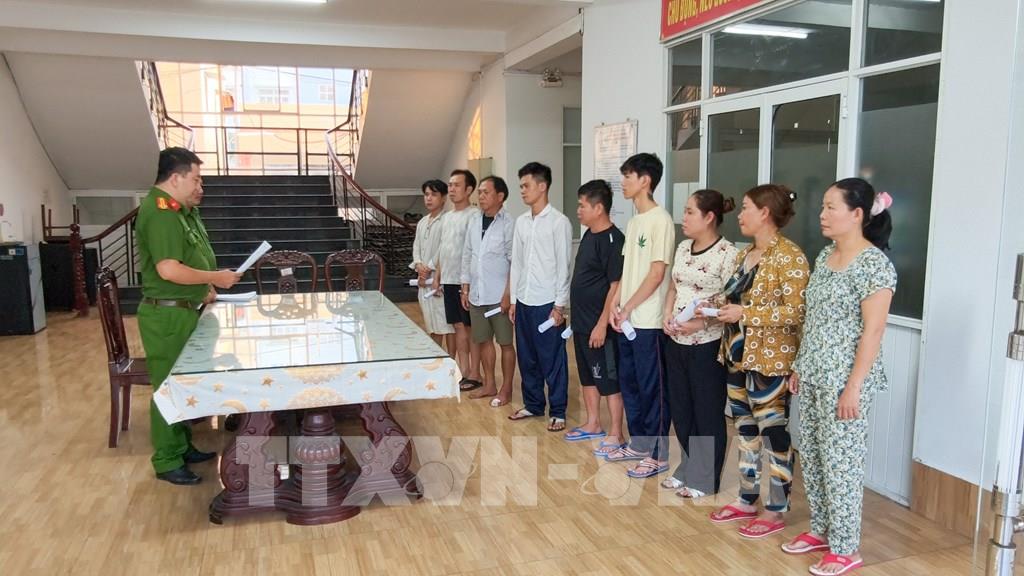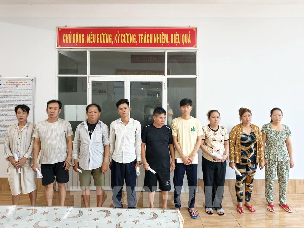 Chín bị can liên quan đến hành vi cướp giật tài sản bị bắt giữ. Ảnh: TTXVN phát