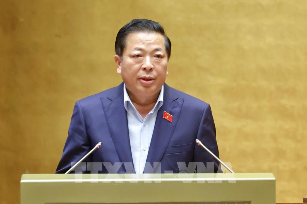 Bộ trưởng Bộ Xây dựng Trần Hồng Minh trình bày Tờ trình về chủ trương đầu tư xây dựng Cảng Hàng không quốc tế Gia Bình. Ảnh: Doãn Tấn - TTXVN