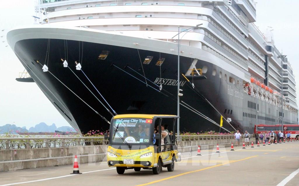 Tàu Westerdam (Hà Lan) cập cảng tàu Hạ Long. Ảnh: Văn Đức - TTXVN