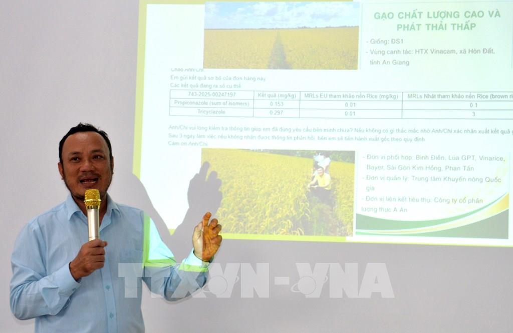 Tiến sĩ Lê Văn Dũng, Phó Giám đốc Trung tâm Khuyến nông tỉnh An Giang, trao đổi tại tọa đàm. Ảnh: Văn Sĩ - TTXVN
