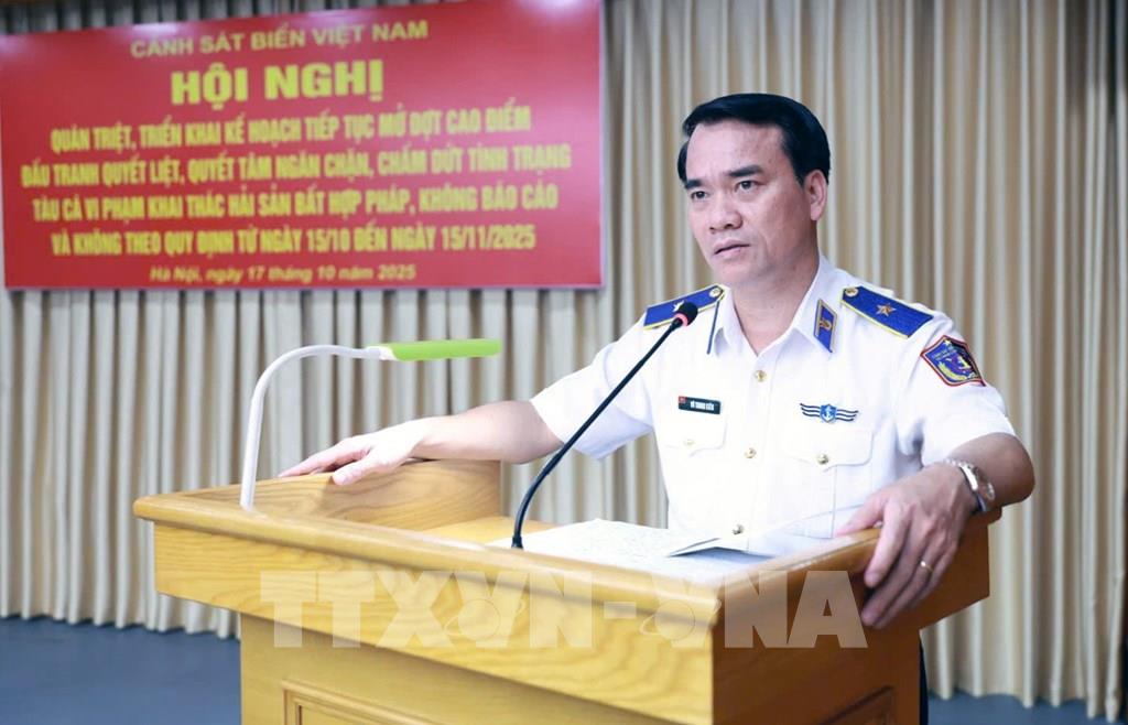 Ngày 17/10, Cảnh sát biển Việt Nam tổ chức Hội nghị tăng tốc mở đợt cao điểm đấu tranh quyết liệt, quyết tâm ngăn chặn, góp phần cùng cả nước chấm dứt tình trạng tàu cá vi phạm khai thác hải sản bất hợp pháp, không báo cáo và không theo quy định (IUU). Thiếu tướng Vũ Trung Kiên, Phó Tư lệnh Pháp luật Cảnh sát biển Việt Nam chủ trì hội nghị.