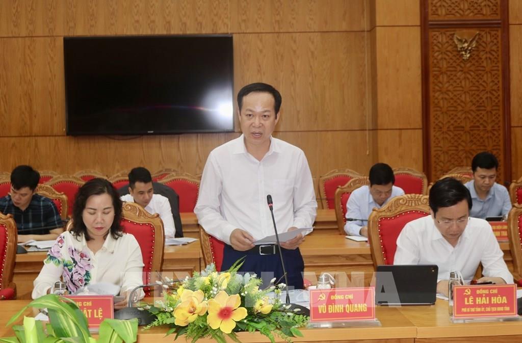 Phó Chủ tịch UBND tỉnh Cao Bằng Vũ Đình Quang báo cáo tình hình phát triển kinh tế-xã hội trên địa bàn tỉnh. Ảnh: Chu Hiệu-TTXVN.