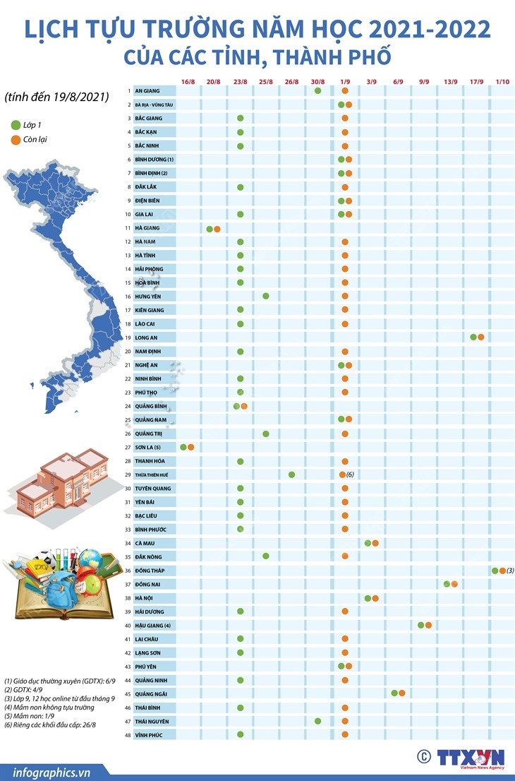 Cập nhật mới nhất lịch tựu trường năm học 2021-2022 của các tỉnh, thành phố
