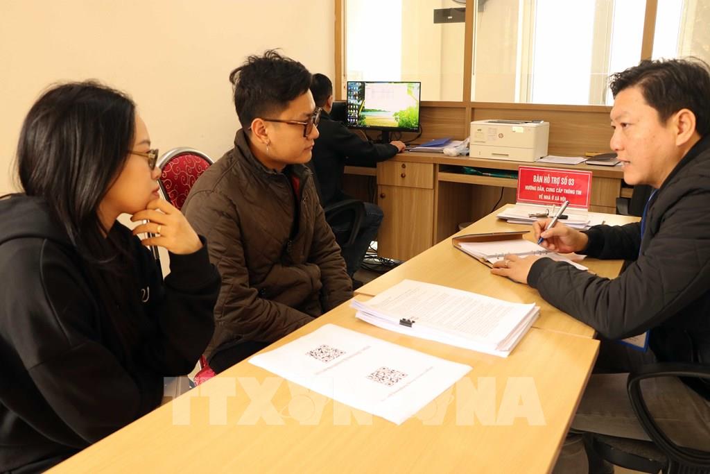 Tổ công tác hướng dẫn người dân về nhà ở xã hội (Sở Xây dựng Hải Phòng) tư vấn cho người dân muốn mua nhà ở xã hội. Ảnh: Hoàng Ngọc – TTXVN