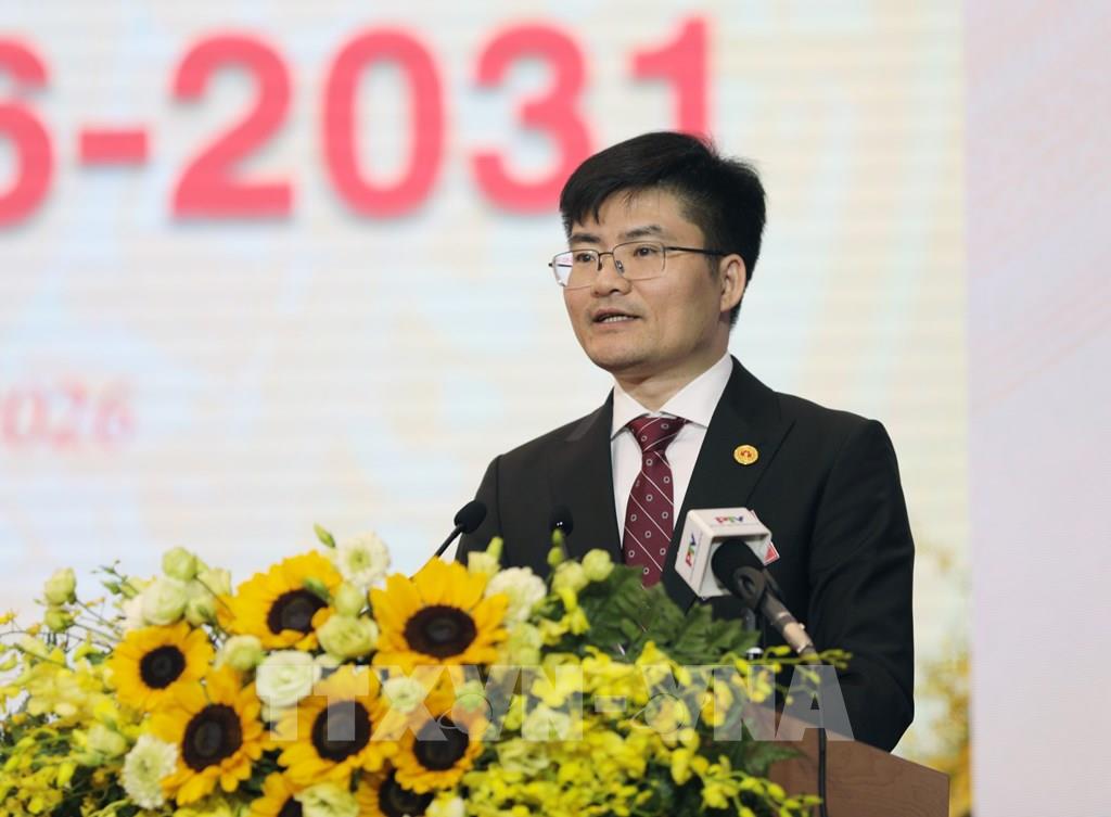 Chủ tịch Hiệp hội Doanh nghiệp tỉnh Phú Thọ Nguyễn Văn Hùng phát biểu tại Đại hội. Ảnh: Tạ Toàn – TTXVN