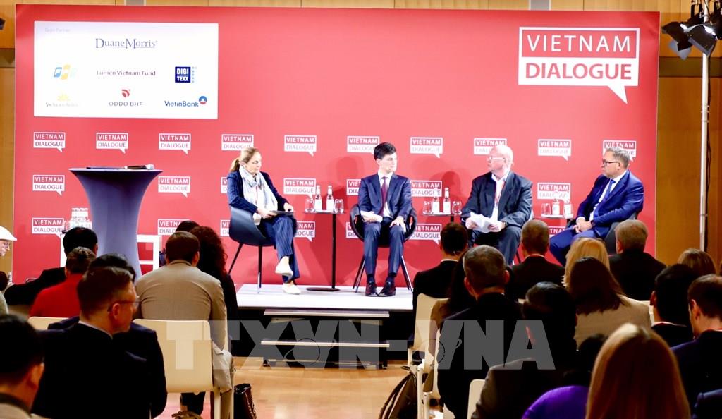 Diễn đàn Đối thoại Việt Nam năm 2025 tập trung về 4 chủ đề lớn đang định hình tương lai hợp tác kinh tế Việt Nam – Liên minh châu Âu (EU). Ảnh: Phương Hoa - PVTTXVN tại Đức