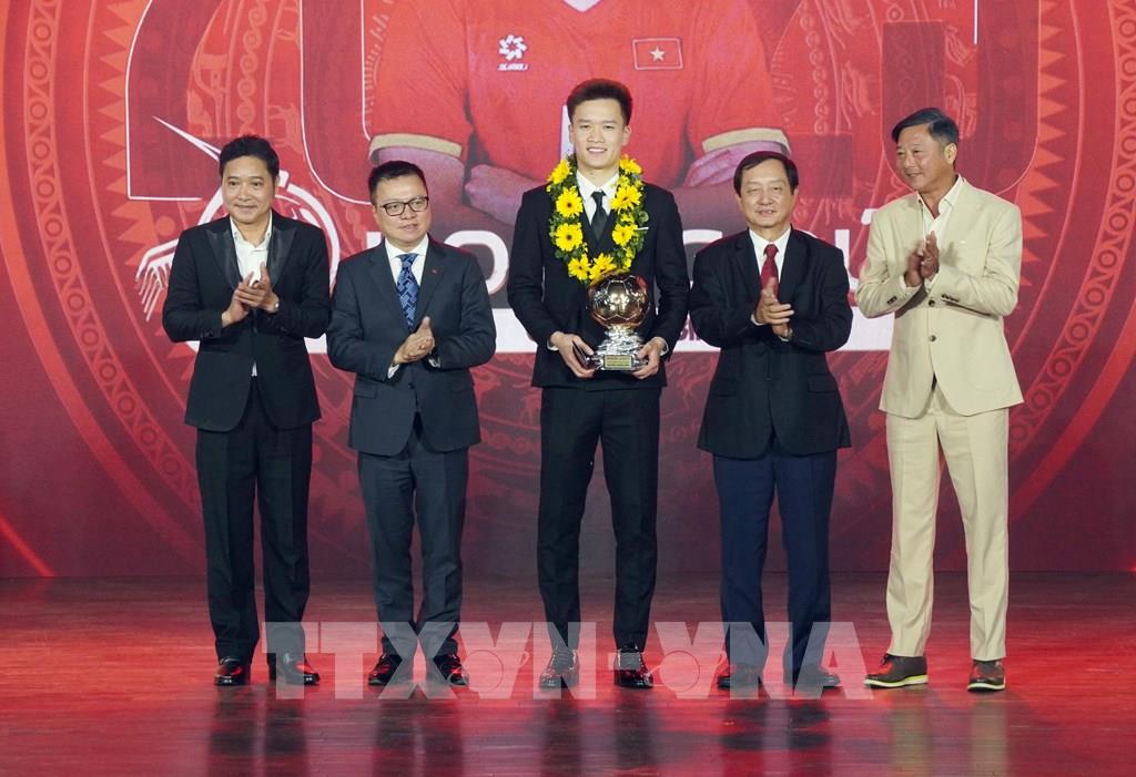 Ban tổ chức trao giải Quả bóng Vàng tới cầu thủ Nguyễn Hoàng Đức. Ảnh: Trung Tuyến – TTXVN