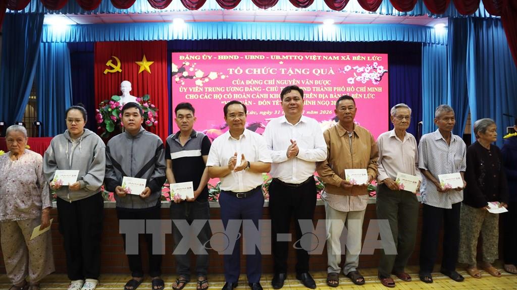 Ngày 31/1, trong chuyến công tác tới địa bàn xã Bến Lức, tỉnh Tây Ninh, đồng chí Nguyễn Văn Được, Ủy viên Trung ương Đảng, Phó Bí thư Thành ủy, Chủ tịch UBND Thành phố Hồ Chí Minh đã đến thăm hỏi và trao tặng quà Tết Nguyên đán Bính Ngọ 2026 cho các hộ gia đình chính sách, hộ nghèo và hộ có hoàn cảnh khó khăn trên địa bàn xã.