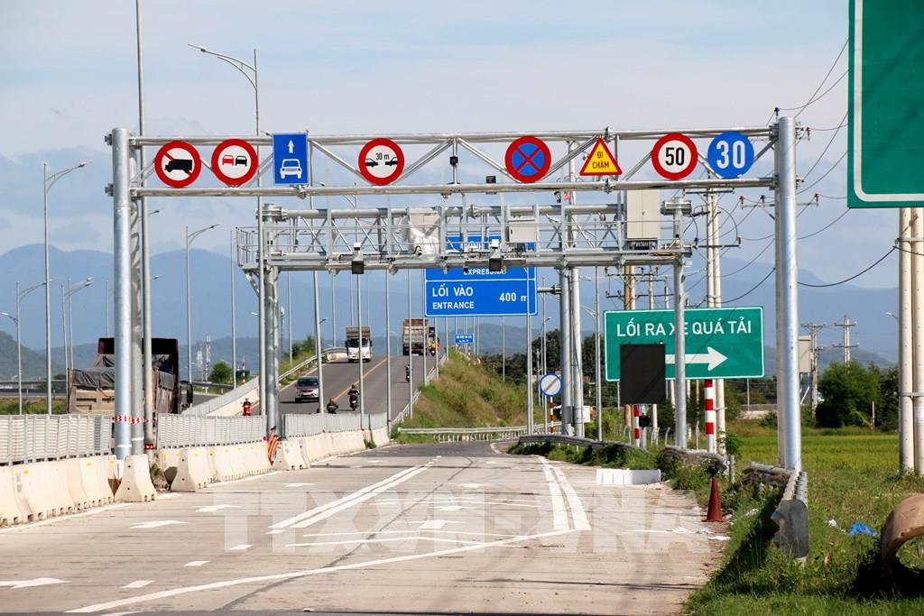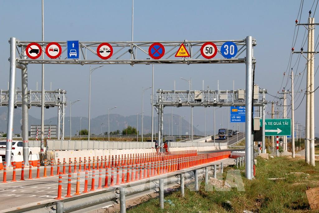 Hệ thống thu phí tự động tại nút giao Ma Lâm trên cao tốc Vĩnh Hảo – Phan Thiết. Ảnh: Nguyễn Thanh - TTXVN