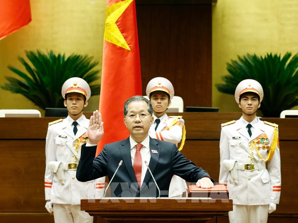 Chánh án Tòa án nhân dân Tối cao Nguyễn Văn Quảng tuyên thệ nhậm chức. Ảnh: Thống Nhất - TTXVN