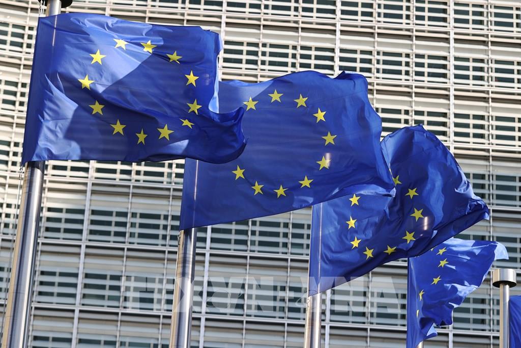 Cờ Liên minh châu Âu (EU) tại trụ sở Ủy ban châu Âu ở Brussels, Bỉ. Ảnh: THX/TTXVN