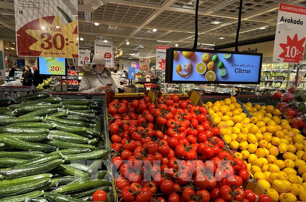 Người tiêu dùng mua hàng tại siêu thị ở Stockholm, Thụy Điển. Ảnh: THX/TTXVN