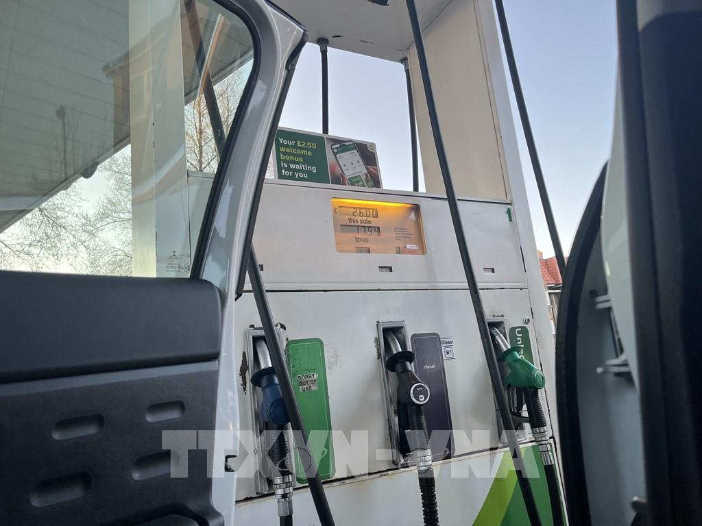 Thiết bị bơm nhiên liệu tại một trạm xăng ở London. Ảnh: Hương Giang - PV TTXVN tại Anh