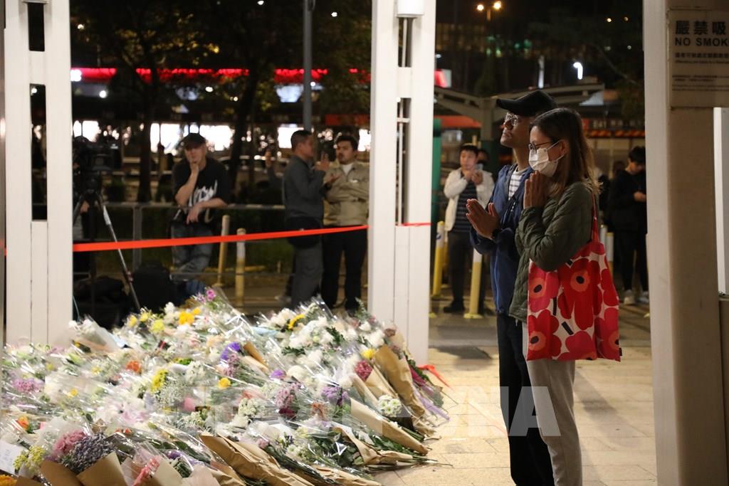 Người dân đặt hoa tưởng niệm các nạn nhân trong vụ cháy chung cư tại Tai Po, Hong Kong (Trung Quốc). Ảnh: Yonhap/TTXVN