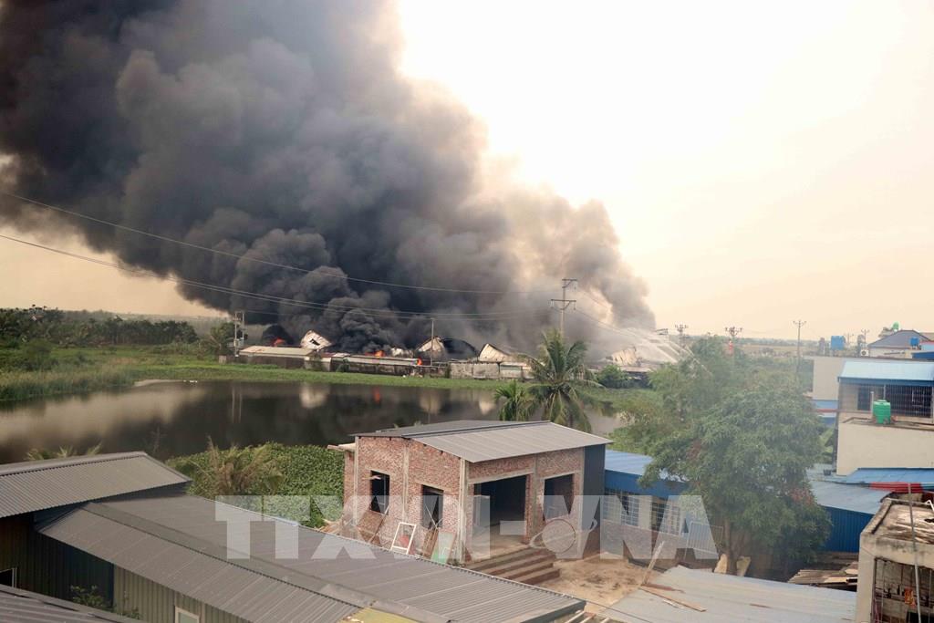 Hiện trường đám cháy tại thôn Đông Tiến, xã Chấn Hưng, thành phố Hải Phòng sáng 14/12. Ảnh: Hoàng Ngọc – TTXVN
