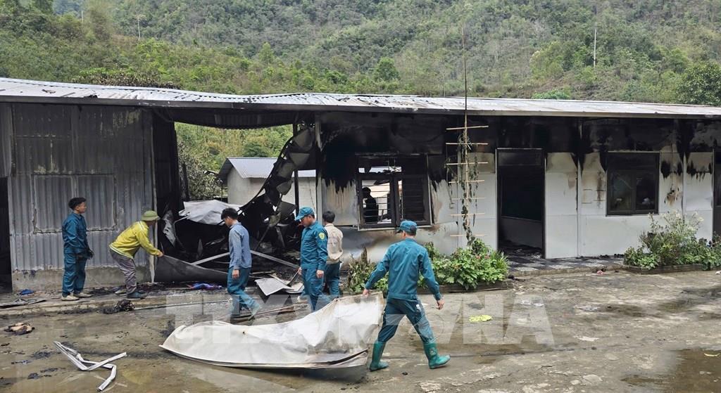 Vụ cháy lan sang các phòng học của điểm Trường tiểu học Pá Đởn, xã Lê Lợi. Ảnh: TTXVN phát