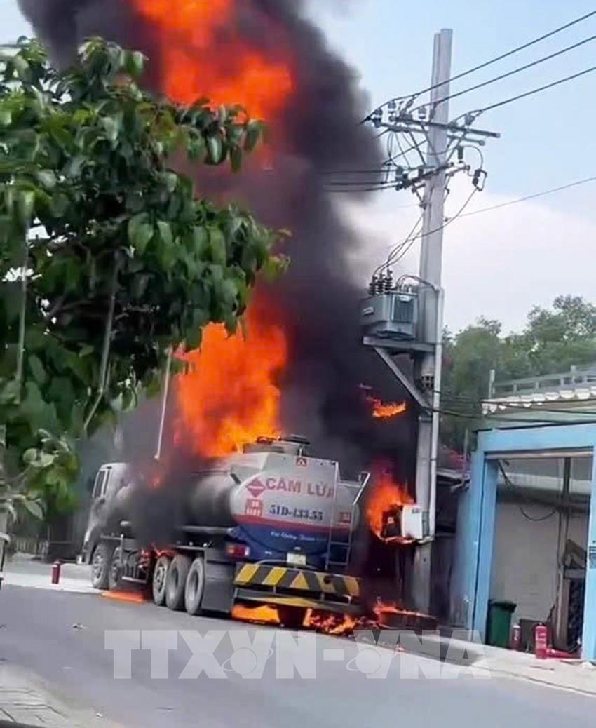 Cháy xe bồn chở xăng ở xã Nhà Bè, TP Hồ Chí Minh