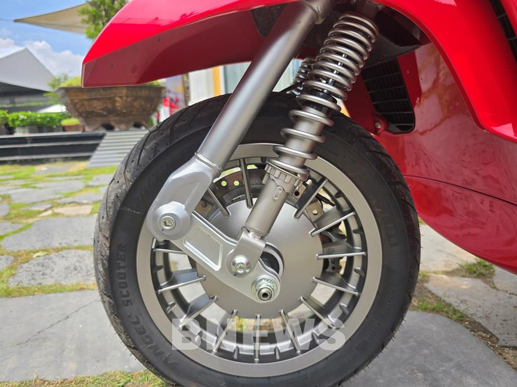 Về khung gầm, xe sở hữu hệ thống treo tay đòn kép (Double Arm-Link) mang lại cảm giác lái chắc chắn, cân bằng và ổn định trên mọi cung đường. Hệ thống phanh đĩa ABS hai kênh cho cả bánh trước và sau đảm bảo an toàn tối đa, đặc biệt trong các tình huống phanh gấp. Cặp lốp Pirelli Tubeless kích thước 120/70-12 (trước) và 130/70-12 (sau) giúp xe bám đường tốt và vận hành êm ái.