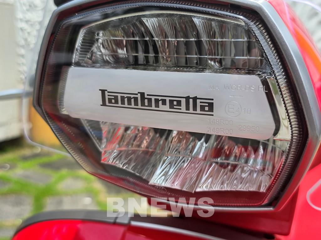 Phần đầu xe nổi bật với hệ thống đèn full-LED hình lục giác độc đáo, tạo điểm nhấn sang trọng cho tổng thể. Toàn bộ cụm đèn được khắc logo Lambretta tinh xảo, kết hợp cùng đèn pha lê công nghệ IFS, mang đến hiệu suất chiếu sáng tối ưu và thẩm mỹ hiện đại.