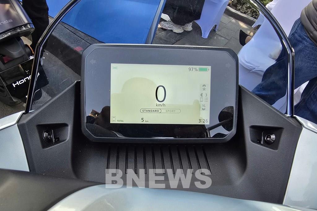 Bên cạnh đó, mẫu xe máy điện này còn sở hữu màn hình TFT 5 inch hiện đại, kết nối công nghệ độc quyền Honda RoadSync®, cho phép kết nối điện thoại thông minh qua Bluetooth®, hỗ trợ nghe gọi, dẫn đường và nhiều tiện ích khác. Cổng sạc xe được bố trí phía trước đầu xe với nắp mở bằng khóa thông minh SMART Key, hộc để đồ trước dung tích lớn tích hợp cổng sạc USB Type-C, gia tăng tính tiện lợi trong quá trình sử dụng.