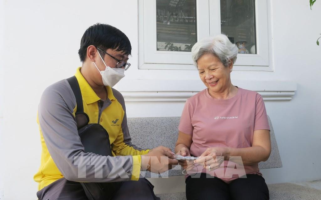 Nhân viên Bưu điện Thành phố Hồ Chí Minh phát lương hưu cho người cao tuổi. Ảnh tư liệu: Đinh Hằng - TTTXVN