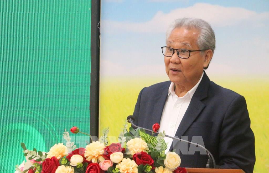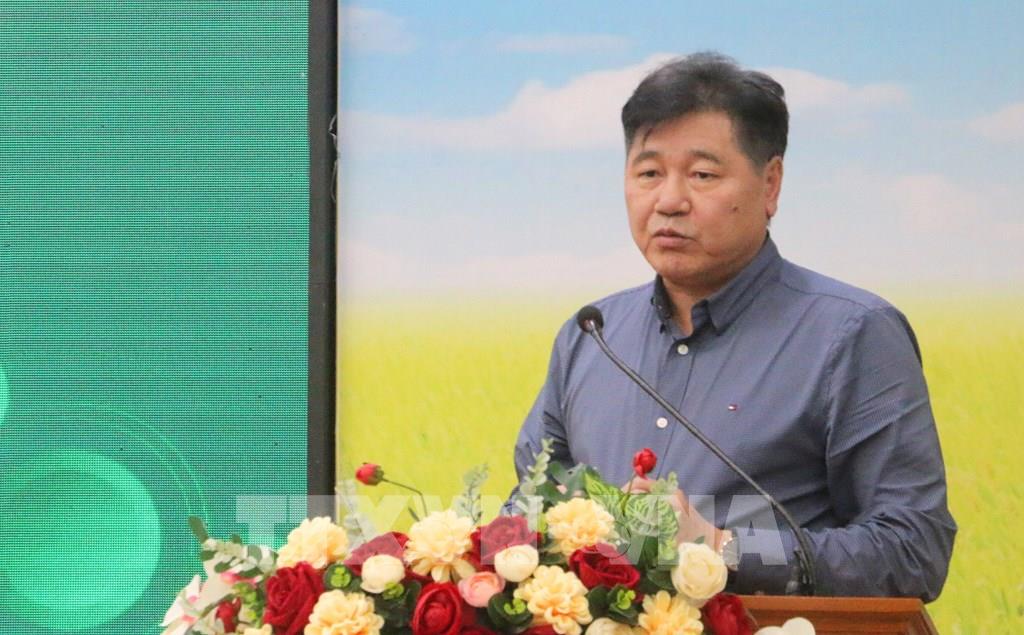 Ông Huỳnh Văn Thòn, Chủ tịch Hội đồng quản trị Công ty Cổ phần Tập đoàn Lộc Trời phát biểu tại buổi hội thảo. Ảnh: Công Mạo-TTXVN