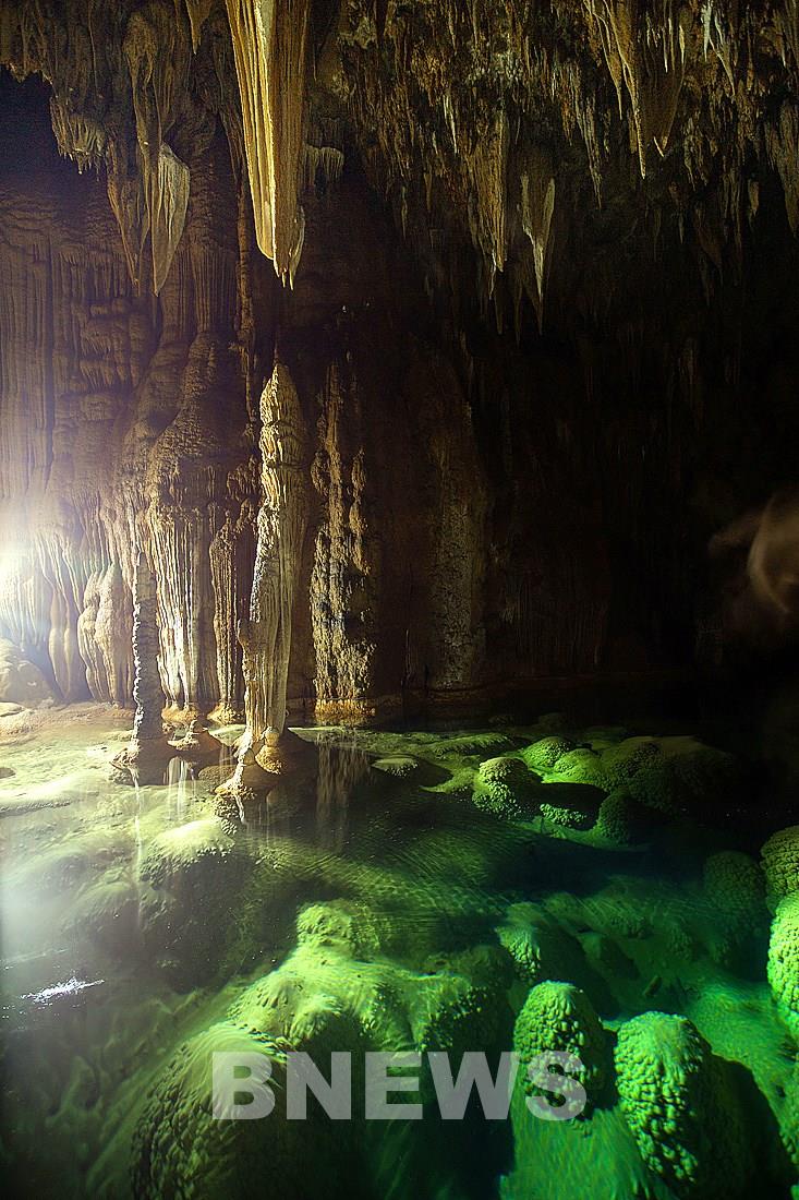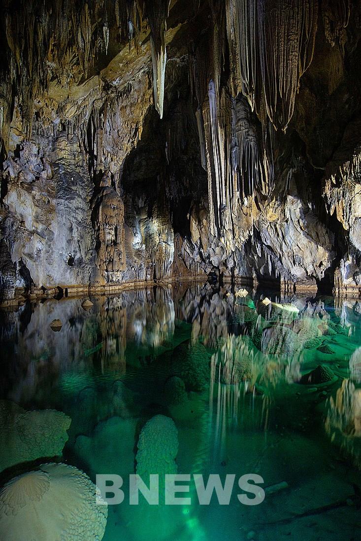 Hồ nước xanh ngọc bích trong Động Nam Sơn không bao giờ cạn là một trong những bí ẩn chưa được khám phá. Ảnh: Trọng Đạt - TTXVN
