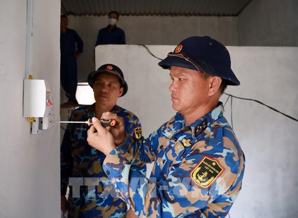 Ngoài việc xây dựng nhà, các thiết bị bên trong như điện, nước đều được cán bộ chiến sỹ Lữ đoàn 101, Vùng 4 Hải quân, lắp đặt phù hợp với nhu cầu sử dụng. Ảnh: Xuân Triệu - TTXVN