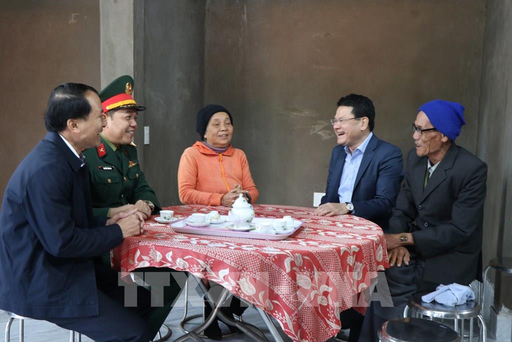 Phó Chủ tịch UBND thành phố Huế Hoàng Hải Minh (thứ 2, phải sang) thăm hỏi các hộ dân nhận nhà mới. Ảnh: Mai Trang- TTXVN