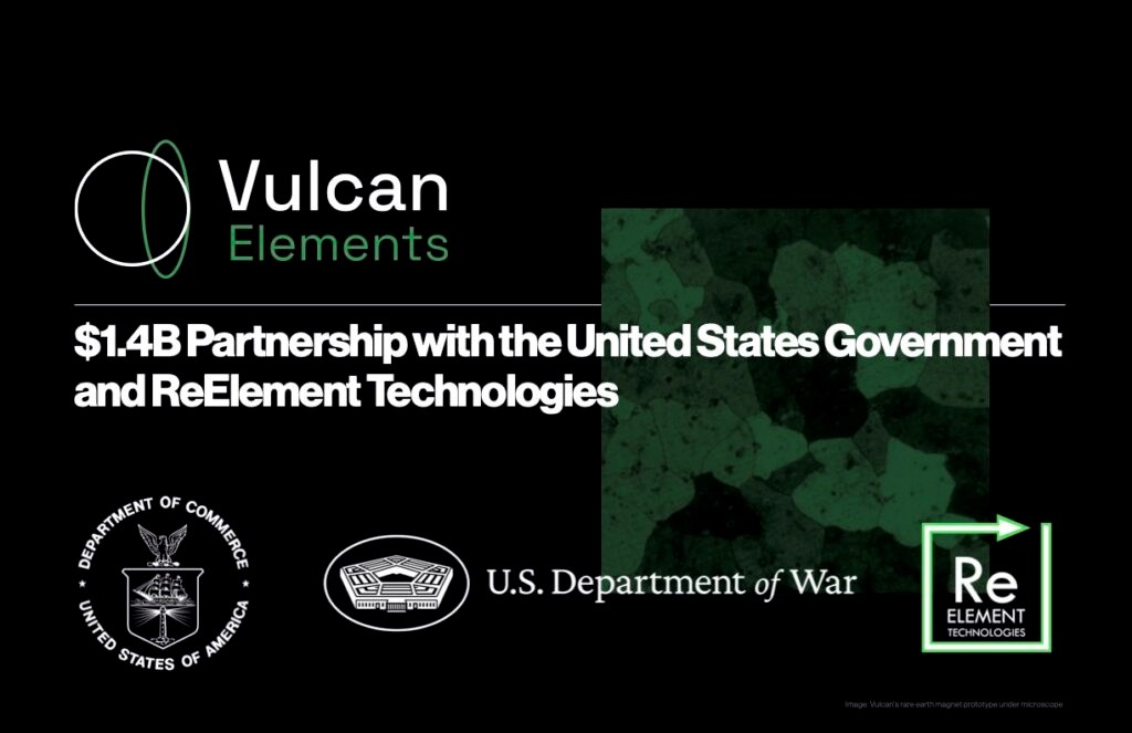 Liên danh do Vulcan Elements đứng đầu sẽ nhận khoản vay 620 triệu USD từ Văn phòng Vốn Chiến lược (OSC) thuộc Bộ Quốc phòng Mỹ, nhằm xây dựng và vận hành một cơ sở sản xuất nam châm tại Mỹ có năng lực sản xuất 10.000 tấn nam châm mỗi năm. Bộ Thương mại Mỹ đóng góp 50 triệu USD, còn các nhà đầu tư tư nhân góp 550 triệu USD.Tin liên quan