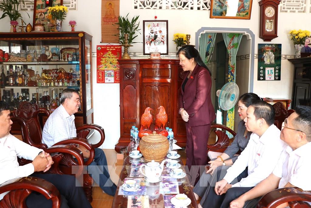Đoàn công tác Hội đồng dân tộc của Quốc hội thăm, chúc Tết cổ truyền Chôl Chnăm Thmây năm 2026 ông Huỳnh Phước Long (thứ 2, từ trái qua), xã Châu Thành, nguyên Phó Chủ tịch Thường trực Hội đồng Dân tộc của Quốc hội. Ảnh: Thanh Hòa - TTXVN