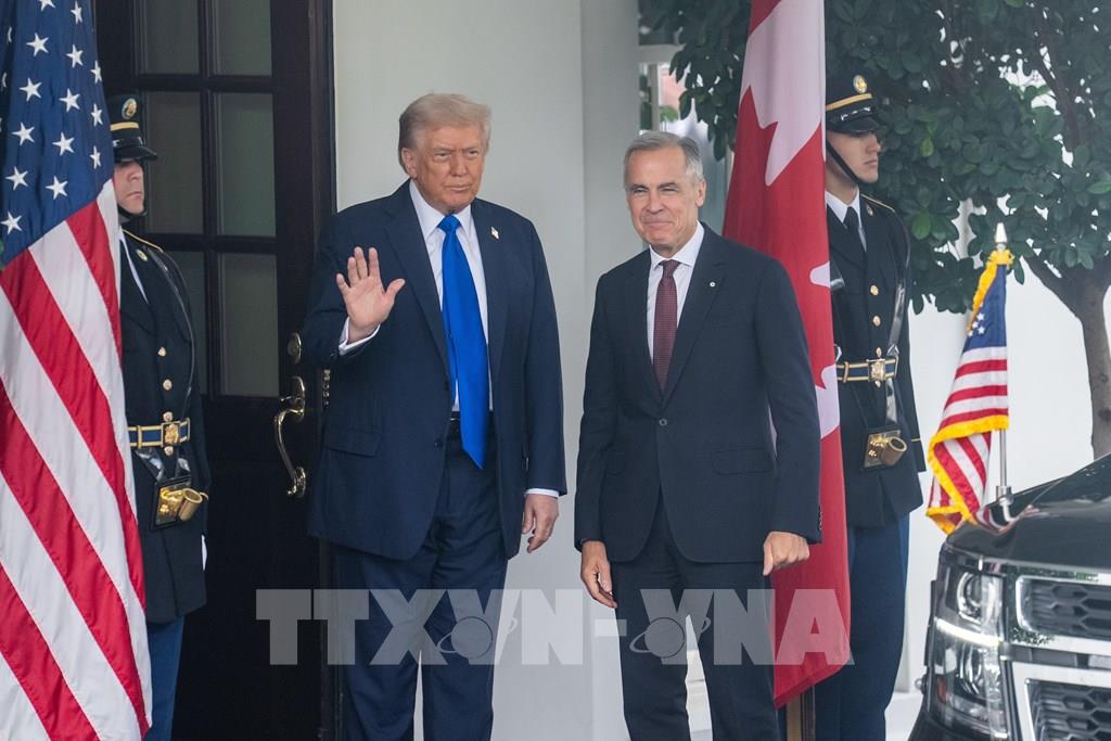 Tổng thống Mỹ Donald Trump và Thủ tướng Canada Mark Carney tại cuộc gặp ở Nhà Trắng, Washington, D.C., ngày 7/10/2025. Ảnh: THX/TTXVN
