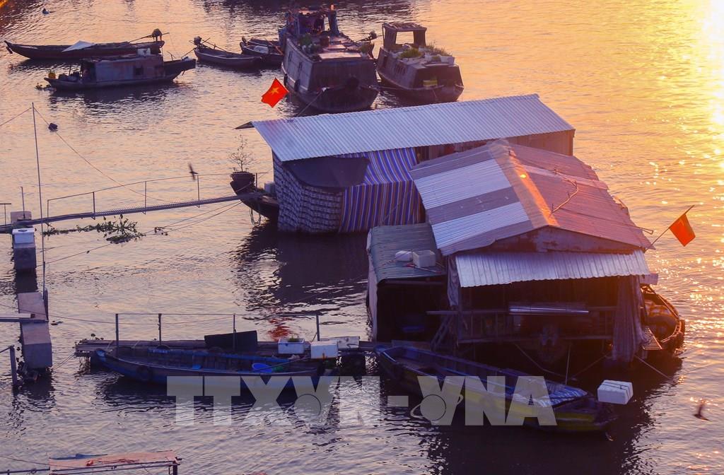 Khi những dãy nhà ven sông ngày càng khang trang, những bờ kè được xây dựng vững chãi, thì hình ảnh những chiếc xuồng ghe còn lại ở chợ nổi Cái Răng càng thêm nổi bật. Ảnh: Duy Khương – TTXVN