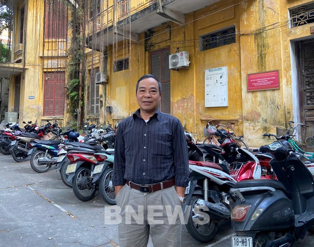 Bác Nam - người làm công việc trông giữ xe tại chợ Rồng hơn 10 năm nay. Ảnh: Minh Giang/BNEWS/TTXVN