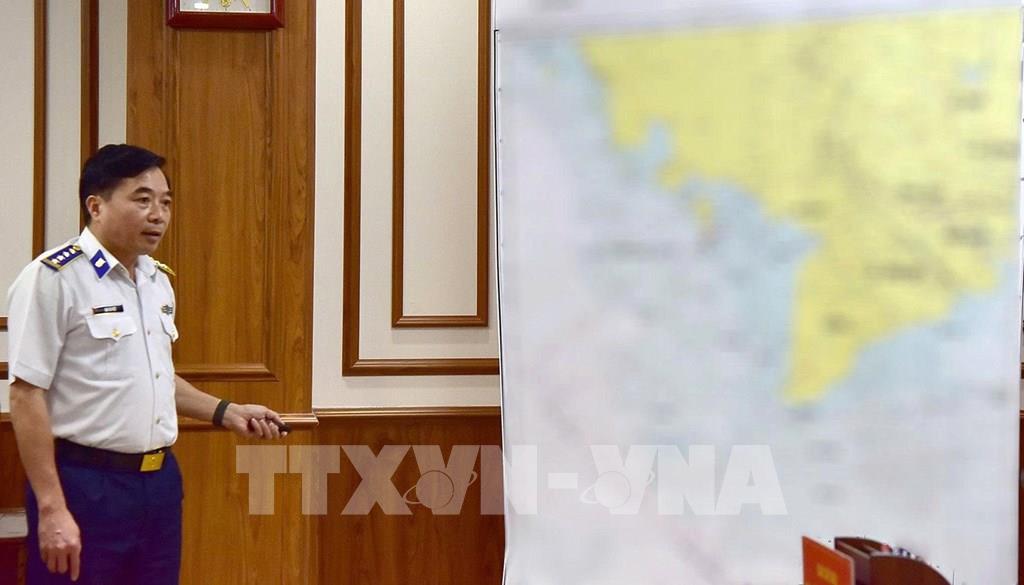 Đại tá Đào Bá Việt, Tư lệnh Vùng Cảnh sát biển 4 báo cáo công tác phòng, chống IUU. Ảnh: TTXVN phát