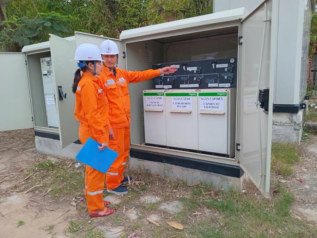 Cán bộ Điện lực Sầm Sơn kiểm tra thiết bị chuẩn bị cho mùa du lịch hè. Ảnh: Văn Giáp/Bnews/vnanet.vn