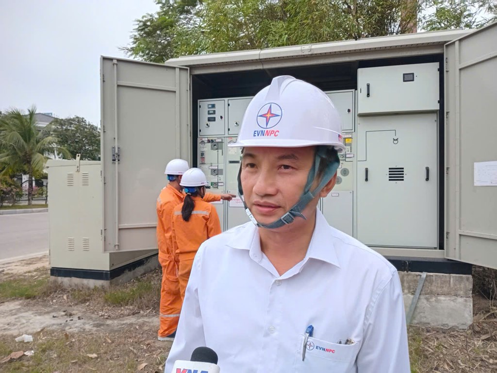 Phó trưởng Điện lực Sầm Sơn trao đổi với phóng viên TTXVN tại hiện trường. Ảnh: Văn Giáp/Bnews/vnanet.vn