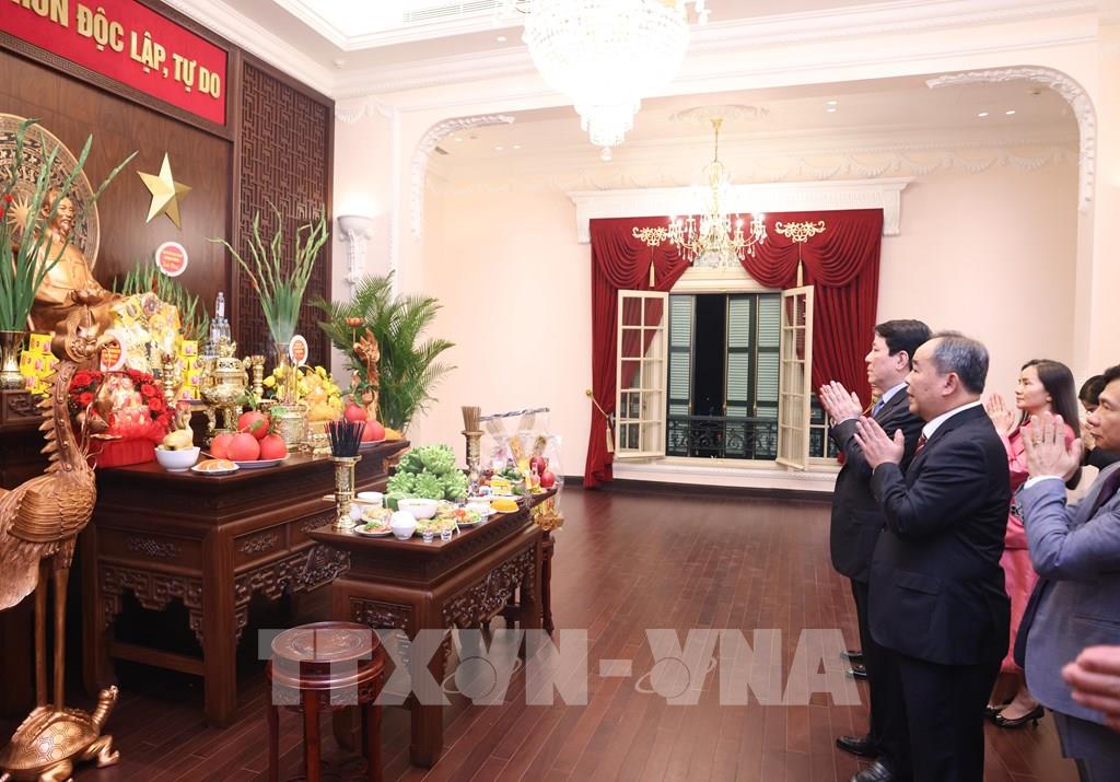 Chủ tịch nước Lương Cường tới dâng hương tưởng niệm Chủ tịch Hồ Chí Minh tại trụ sở cơ quan Văn phòng Chủ tịch nước ở số 2 Lê Thạch. Ảnh: Lâm Khánh - TTXVN