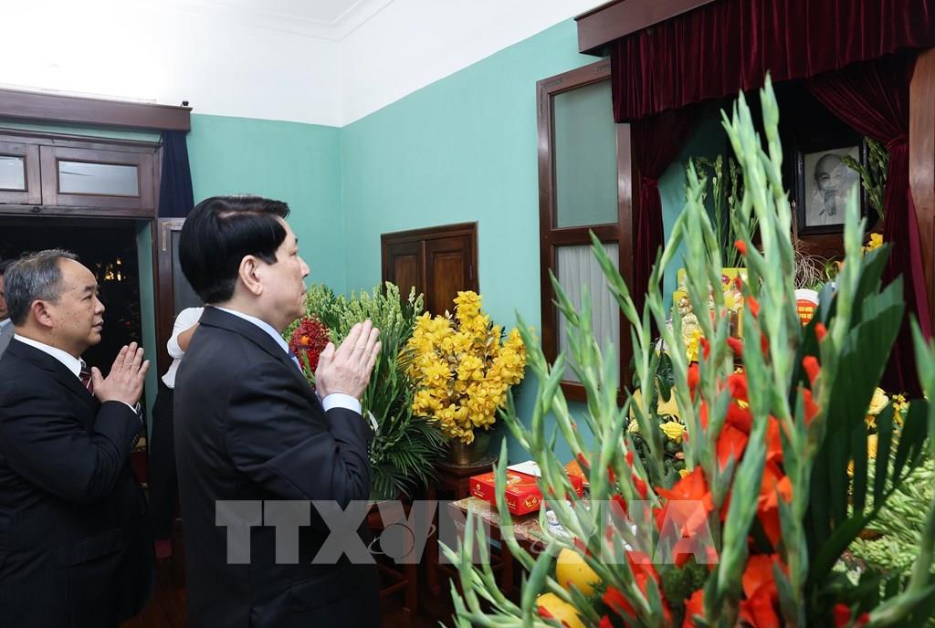Chủ tịch nước Lương Cường dâng hương tưởng niệm Chủ tịch Hồ Chí Minh tại Di tích Nhà 67 ở Khu Di tích Chủ tịch Hồ Chí Minh trong Phủ Chủ tịch. Ảnh: Lâm Khánh - TTXVN