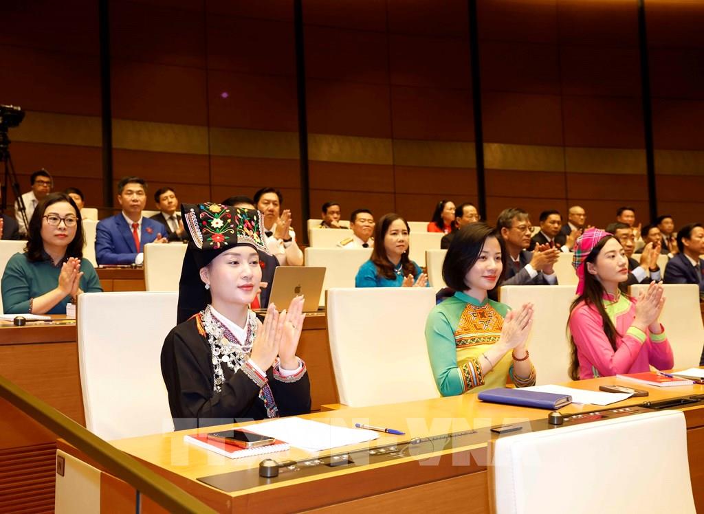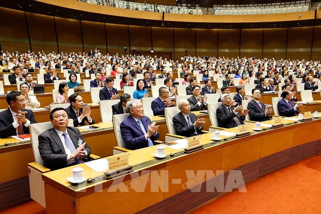 Nhân dịp này, thay mặt các đại biểu Quốc hội mới trúng cử, Chủ tịch Quốc hội bày tỏ sự tri ân sâu sắc đến cử tri và nhân dân cả nước, các đồng chí lãnh đạo, nguyên lãnh đạo Đảng, Nhà nước, Mặt trận Tổ quốc Việt Nam và các đại biểu Quốc hội tiền nhiệm, đặc biệt là lãnh đạo Quốc hội và các đại biểu Quốc hội khóa XV đã để lại nhiều dấu ấn quan trọng.Trong bối cảnh đất nước đối mặt với rất nhiều khó khăn, thách thức, nhưng Quốc hội đã không ngừng nỗ lực, có nhiều đổi mới đột phá; đổi mới tư duy trong xây dựng pháp luật; đẩy mạnh ứng dụng khoa học công nghệ, đổi mới sáng tạo, Quốc hội số, trí tuệ nhân tạo; khẳng định vai trò "đi trước một bước về thể chế", kịp thời tháo gỡ những điểm nghẽn, khơi thông mọi nguồn lực cho phát triển; tăng cường hiệu quả hoạt động giám sát tối cao, quyết định vấn đề quan trọng của đất nước và ngoại giao Nghị viện.