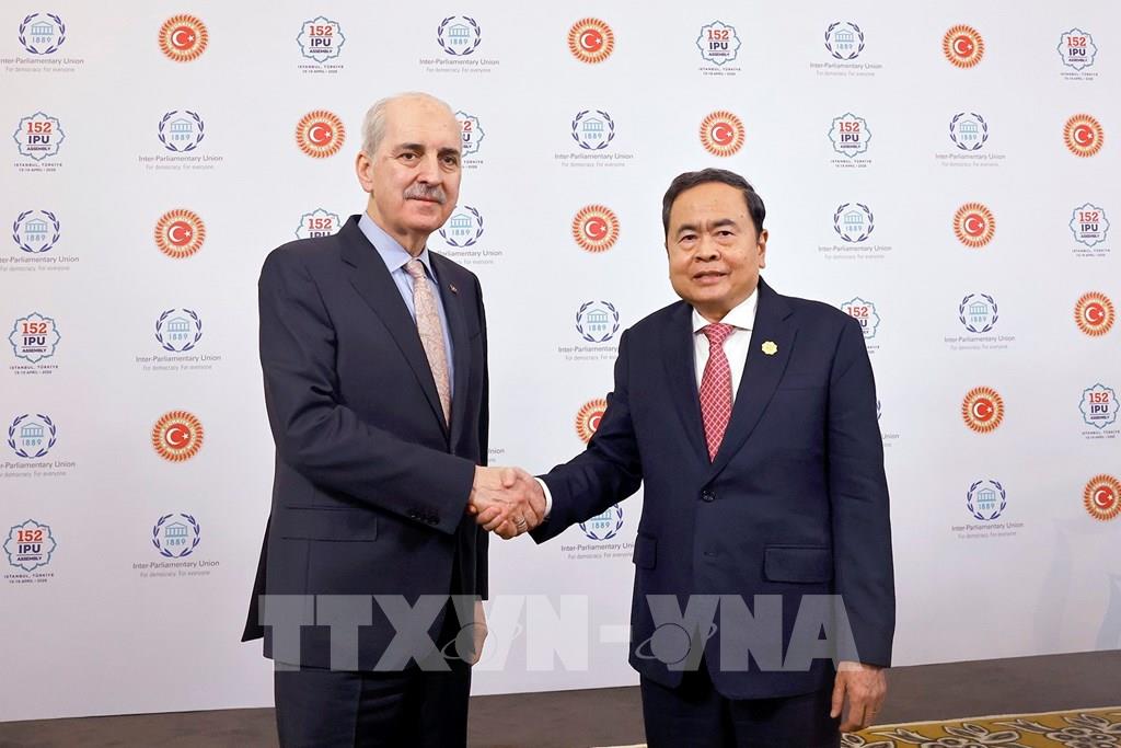 Theo đặc phái viên TTXVN, tiếp tục các hoạt động tham dự Đại hội đồng Liên minh Nghị viện thế giới lần thứ 152 (IPU-152) và tiến hành các hoạt động song phương tại Thổ Nhĩ Kỳ, sáng 17/4 theo giờ địa phương, Chủ tịch Quốc hội Trần Thanh Mẫn đã hội kiến Chủ tịch Quốc hội Thổ Nhĩ Kỳ Numan Kurtulmus.