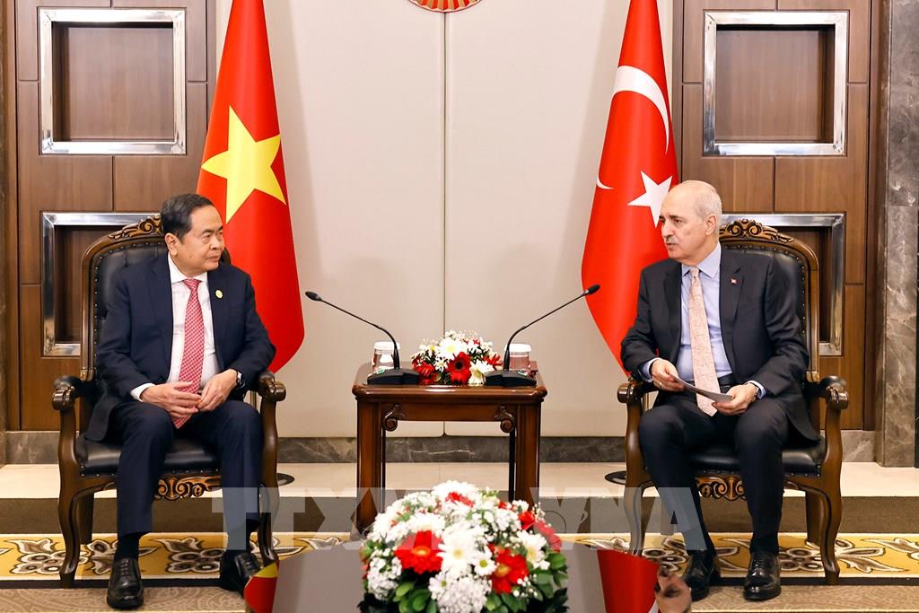 Chủ tịch Quốc hội Trần Thanh Mẫn hội kiến Chủ tịch Quốc hội Thổ Nhĩ Kỳ Numan Kurtulmus. Ảnh: Doãn Tấn – TTXVN