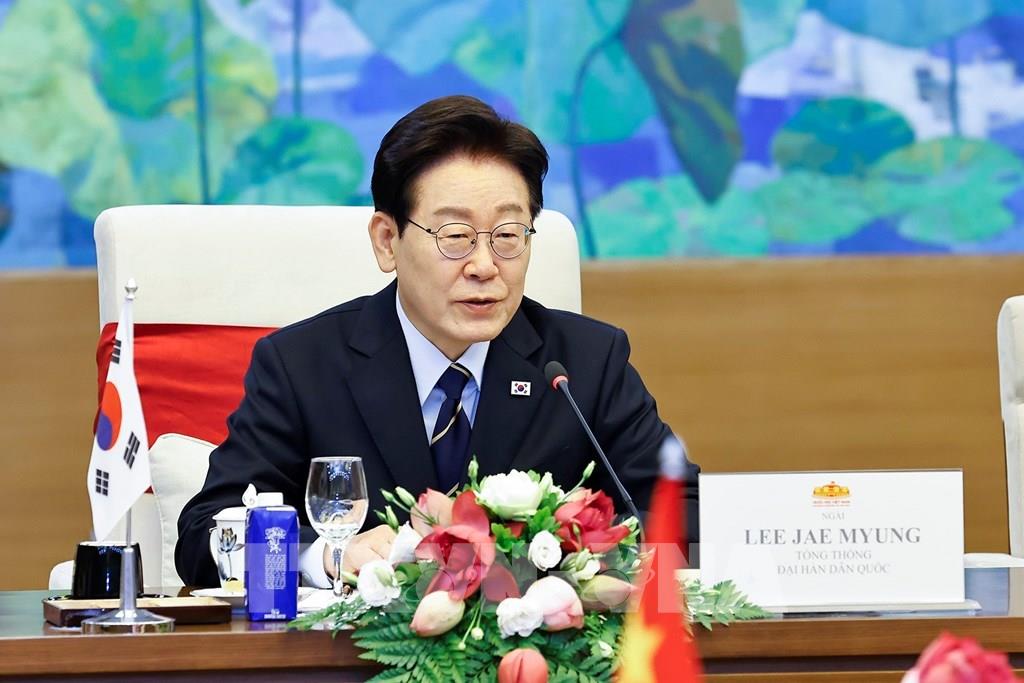 Nhấn mạnh hợp tác kinh tế giữa hai nước góp phần quan trọng vào sự phát triển kinh tế mỗi nước, Tổng thống Lee Jae Myung bày tỏ Hàn Quốc mong muốn đồng hành cùng Việt Nam trong triển khai hiệu quả hai mục tiêu chiến lược đến năm 2030, trở thành nước đang phát triển có công nghiệp hiện đại, thu nhập trung bình cao và hiện thực hóa tầm nhìn đến năm 2045, trở thành nước phát triển, thu nhập cao.